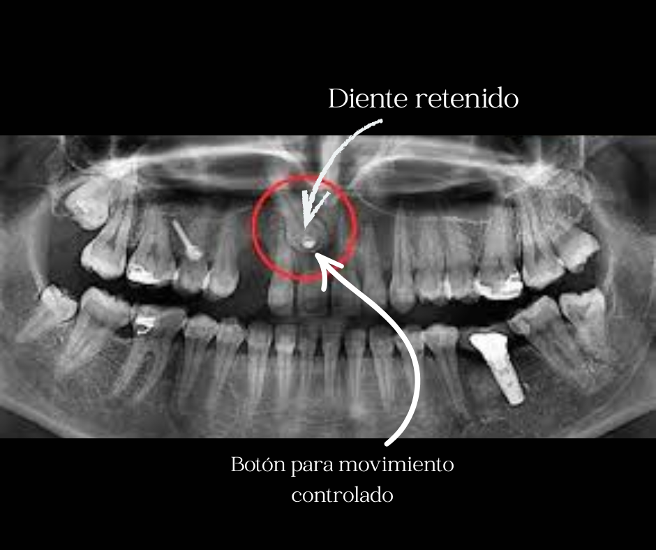 Cuando un diente no puede salir por sí solo porque está incluido (generalmente caninos), usamos una técnica ortodóntica moderna llamada colocación de botones.